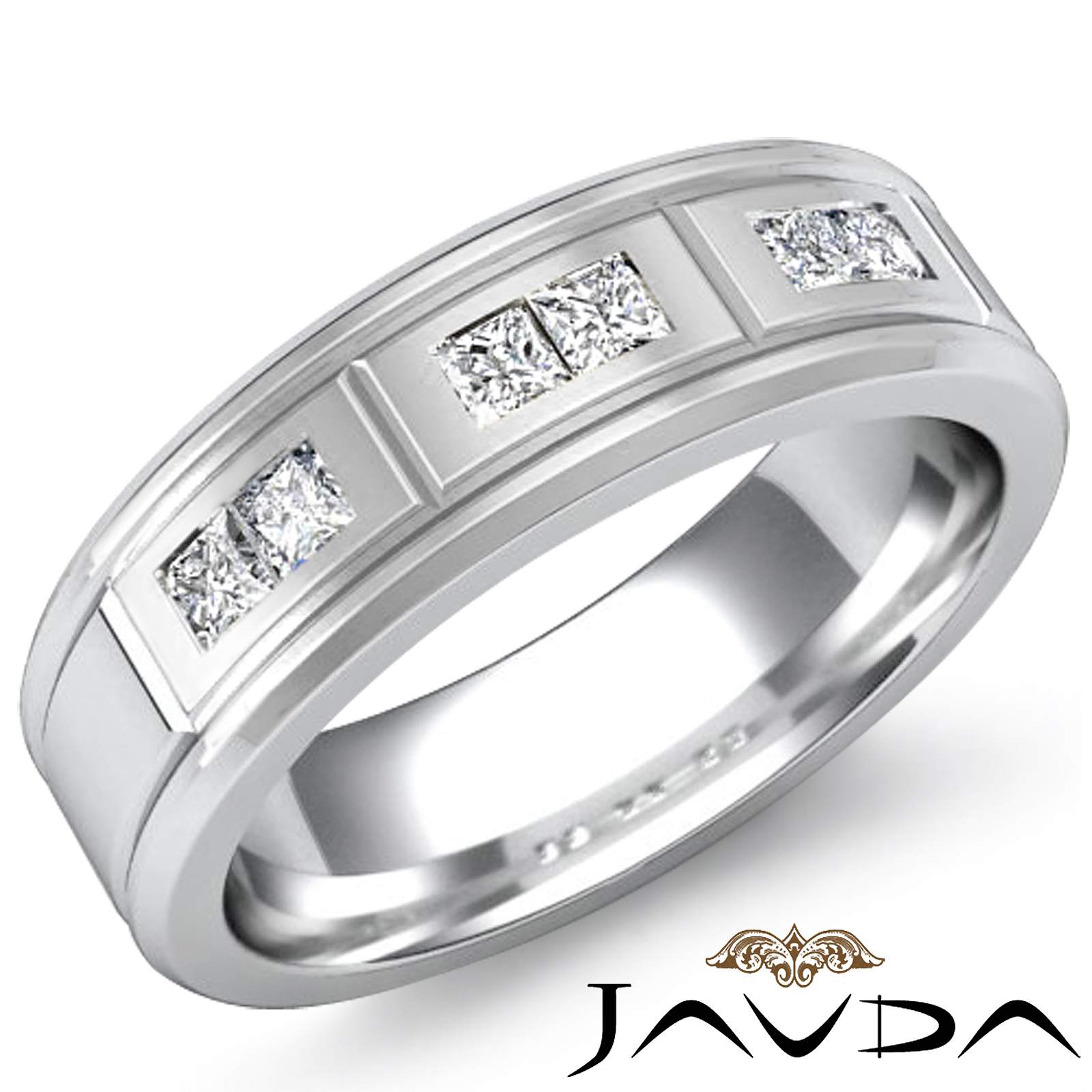 Center 0.60 ctw. Princess Diamond Princess Diamond Men's Wedding band Ring made in 18k Gold White. (0.6Ct. tw.)