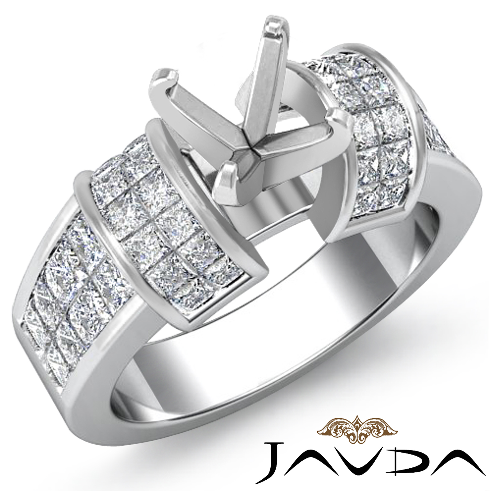 1.96Ct Diamond Engagement Ring 14K White Gold Princess Semi Mount