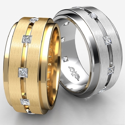 Handsome 9.4mm wide ring for him is comfort fit & available in 14k & 18k white gold, yellow gold and rose gold & platinum 950.