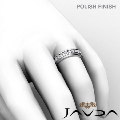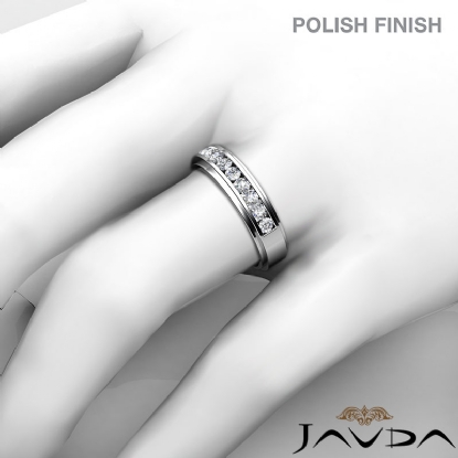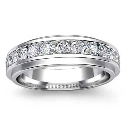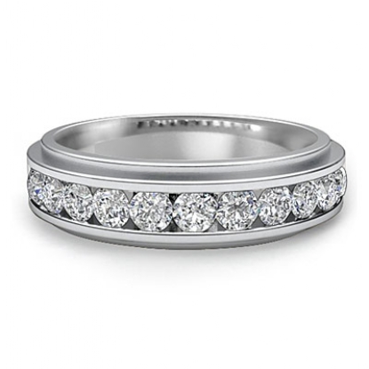 This stunning men's channel set diamond half wedding band is made from quality 14k white gold. Showcasing polished finish step edge with 0.70 carat round diamond set in a channel setting.