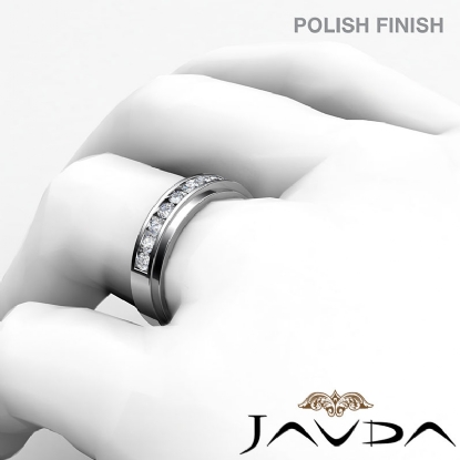 This 6.75mm wide diamond ring for him is comfort fit and available in 14k & 18k white gold, yellow gold and rose gold & platinum 950.