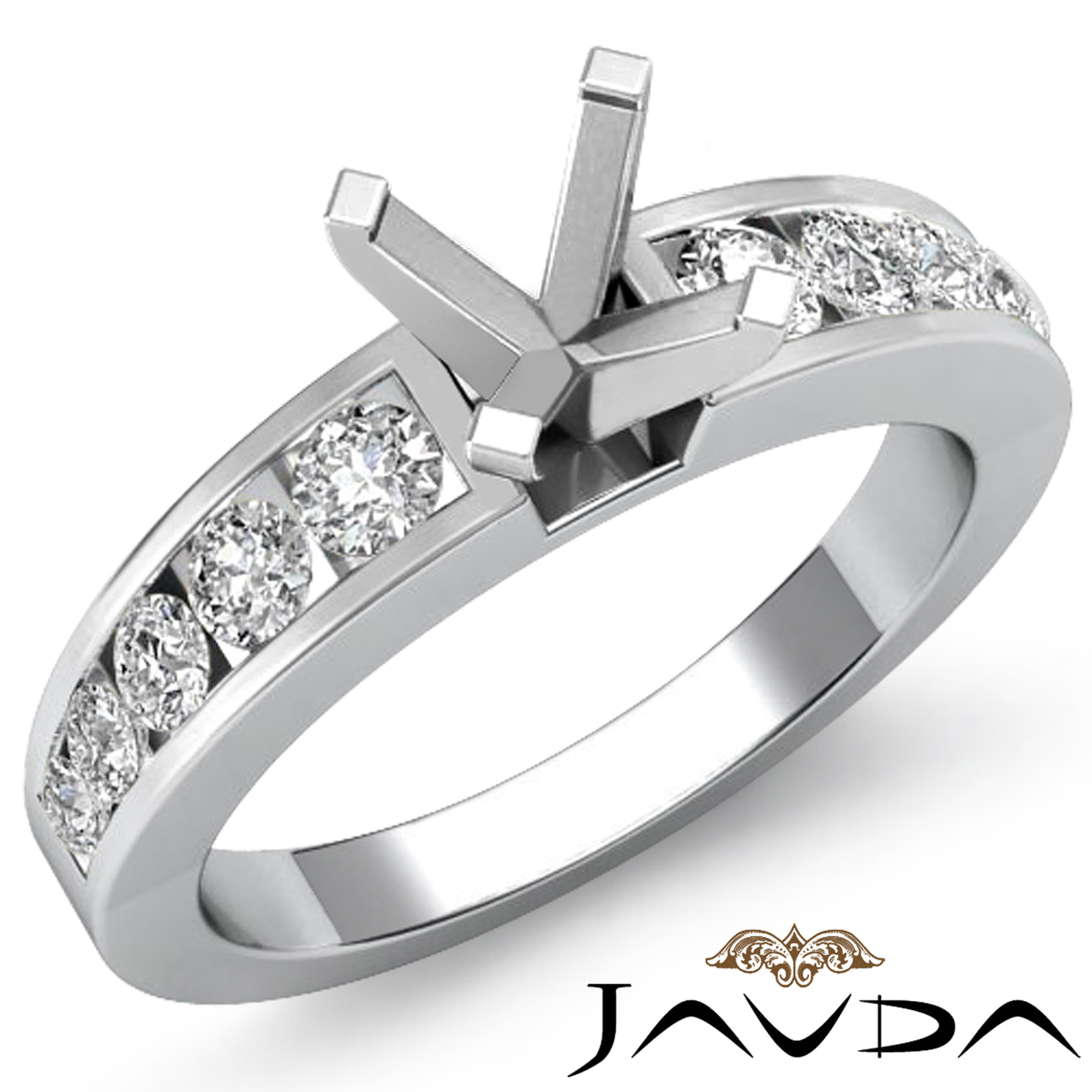This strikingly sophisticated 0.70ct. diamond engagement ring is made in 14K white gold. It showcases a round semi mount in prong setting, with channel set diamonds looking stunning along the shank.