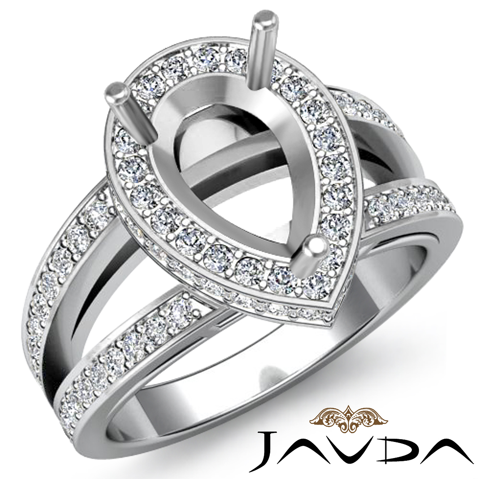 Diamond Engagement Halo Pave Setting Ring Pear Semi Mount Platinum (0.7Ct. tw.)