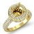 Unapologetically modern, this 18k Gold Yellow diamond engagement ring showcases a round semi mount. It features round pave diamonds in halo & along the shank. (1.26Ct. tw.)
