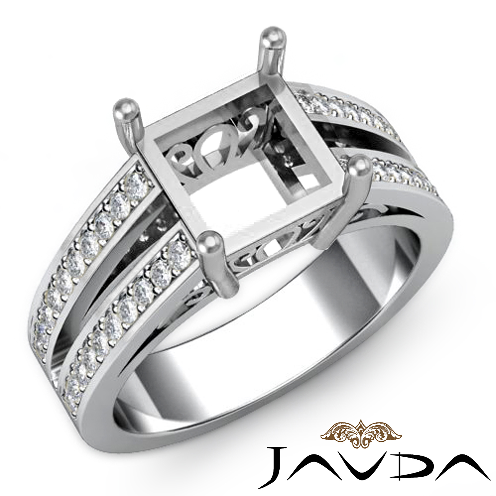 0.75C Princess Diamond Split Shank Semi Mount Engagement Ring 14K Gold