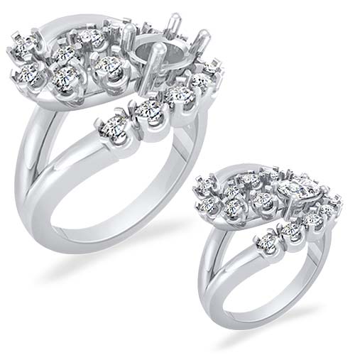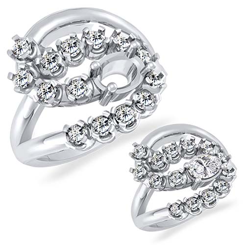 0.75 Carat Round Diamond Women's Fashion Solitaire for Oval Diamond Ring made in 14k White Gold.