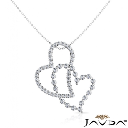 Double your romance with twin intersecting heart pendant necklace crafted in precious 14k white gold. Showcasing two heart intersect each other beautifully set with 0.80 carat round diamonds in prong setting.