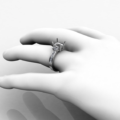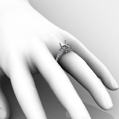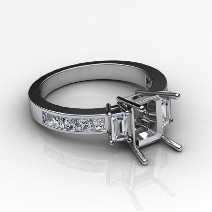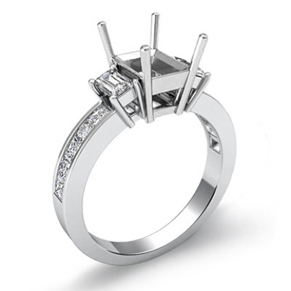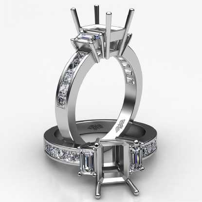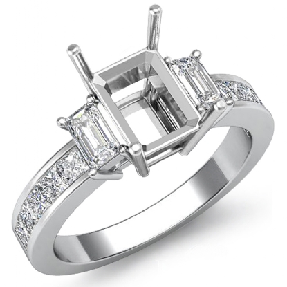 Emerald Diamond 3Stone Engagement Ring Platinum Princess Channel (0.8Ct. tw.)