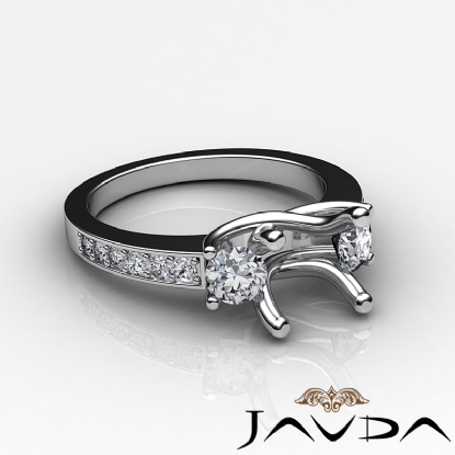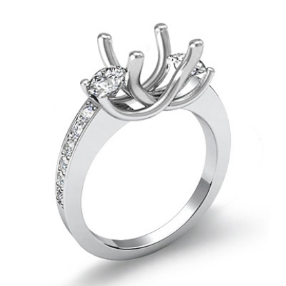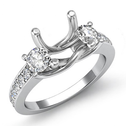 Round Diamond 3 Stone Engagement Ring Setting 18k W Gold Semi Mount (0.8Ct. tw.)