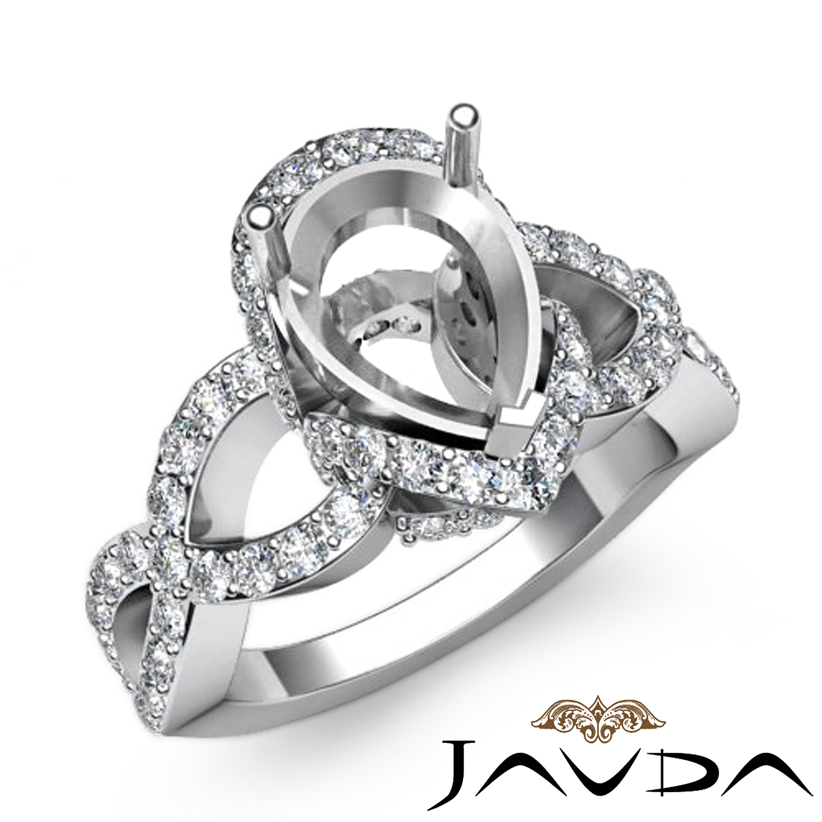 0.8 Ctw Diamond Engagement Halo Ring Pear Semi Mount 14K White Gold
