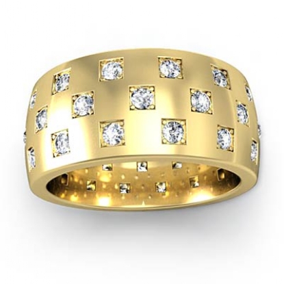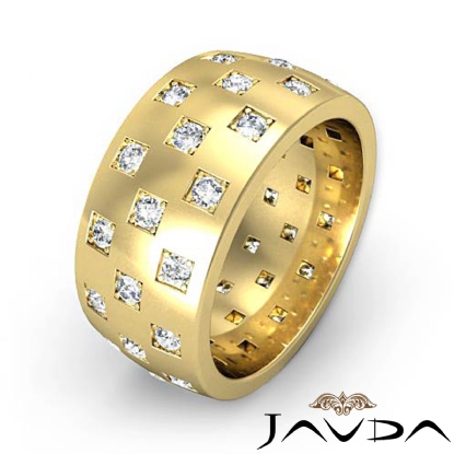 Solid checkered design men's diamond eternity wedding band is crafted in 18k Gold Yellow. This polished finish ring features pave set round diamonds beautifully set in a checkered style.