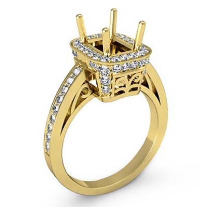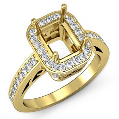 Diamond Engagement Ring Emerald Semi Mount 14k Gold Halo Setting (0.85Ct. tw.)