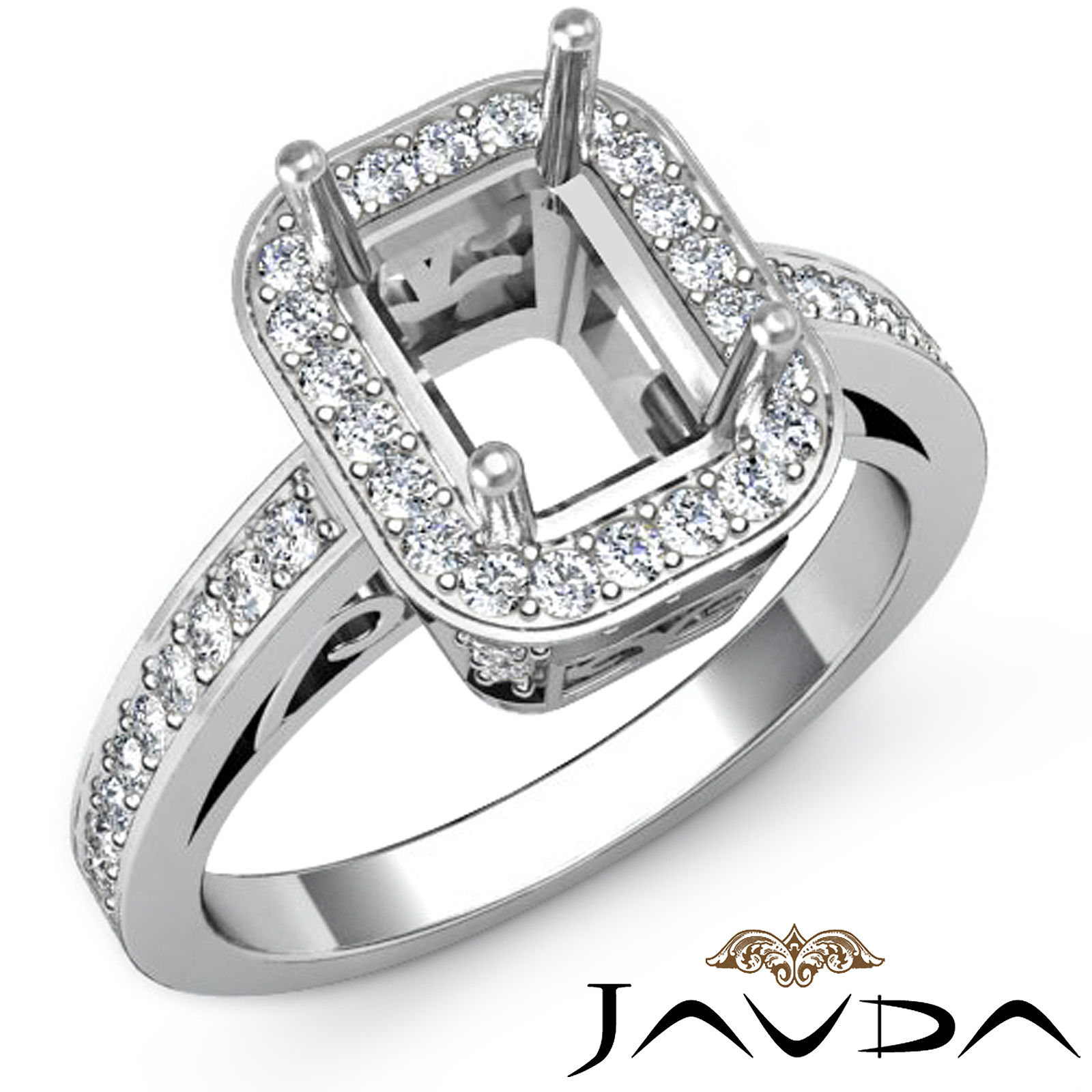 Diamond Engagement Ring Emerald Semi Mount Platinum Halo Setting (0.85Ct. tw.)