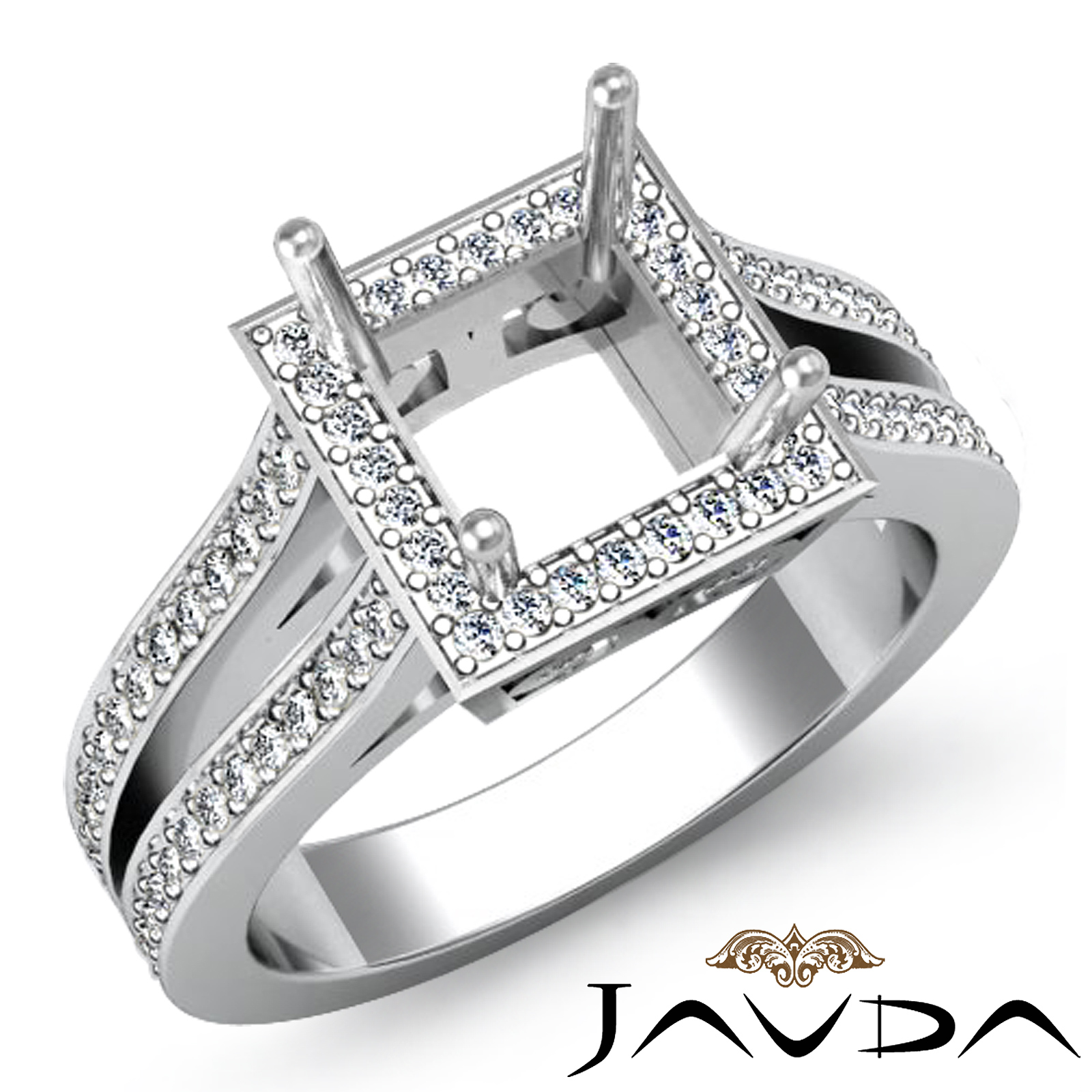 Diamond Engagement Princess Ring 18k W Gold Halo Semi Mount (0.9Ct. tw.)