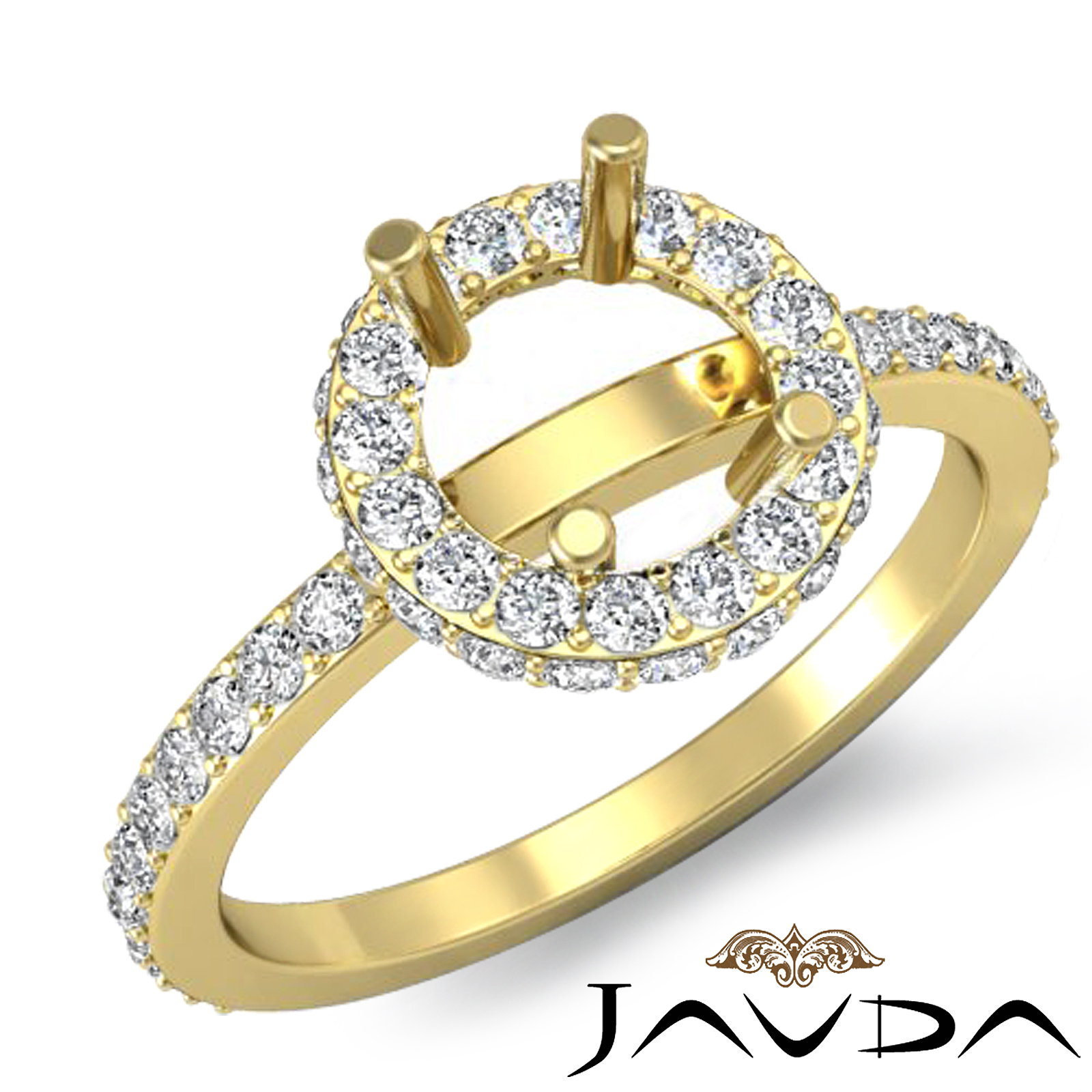 Diamond Engagement Ring 14k Gold Round Semi Mount Halo Pave Setting (0.85Ct. tw.)