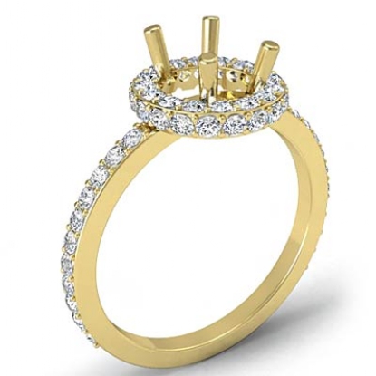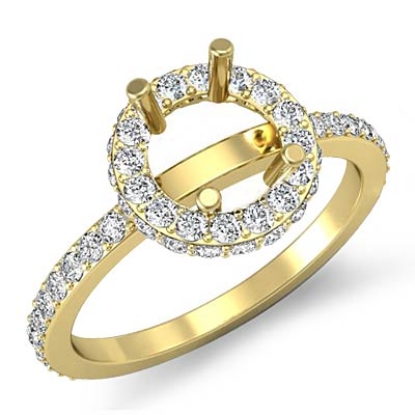 Diamond Engagement Ring 18k Gold Round Semi Mount Halo Pave Setting (0.85Ct. tw.)