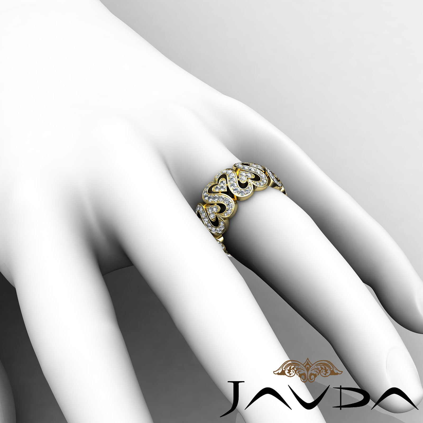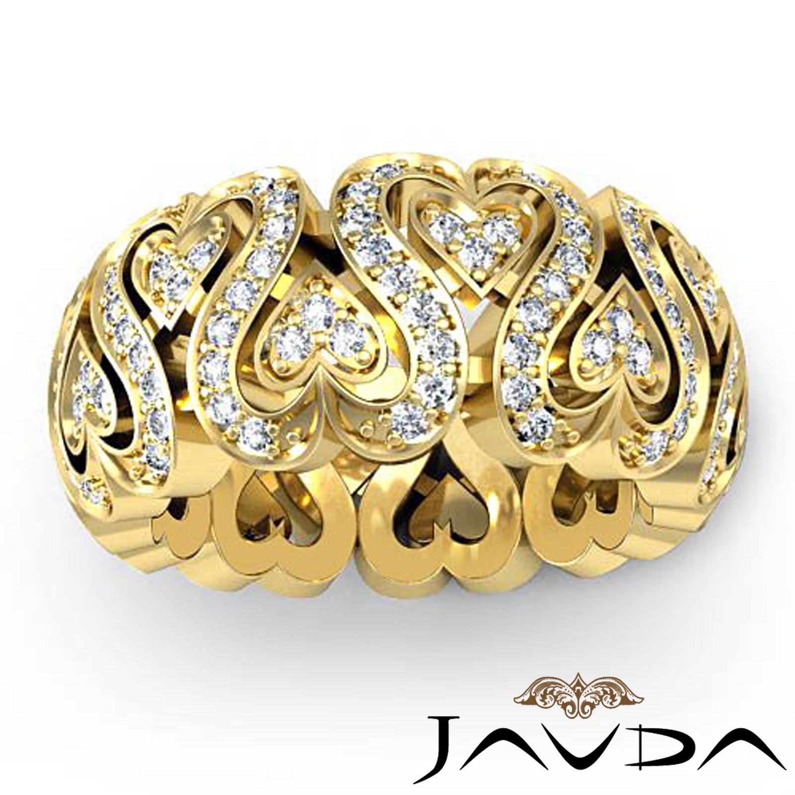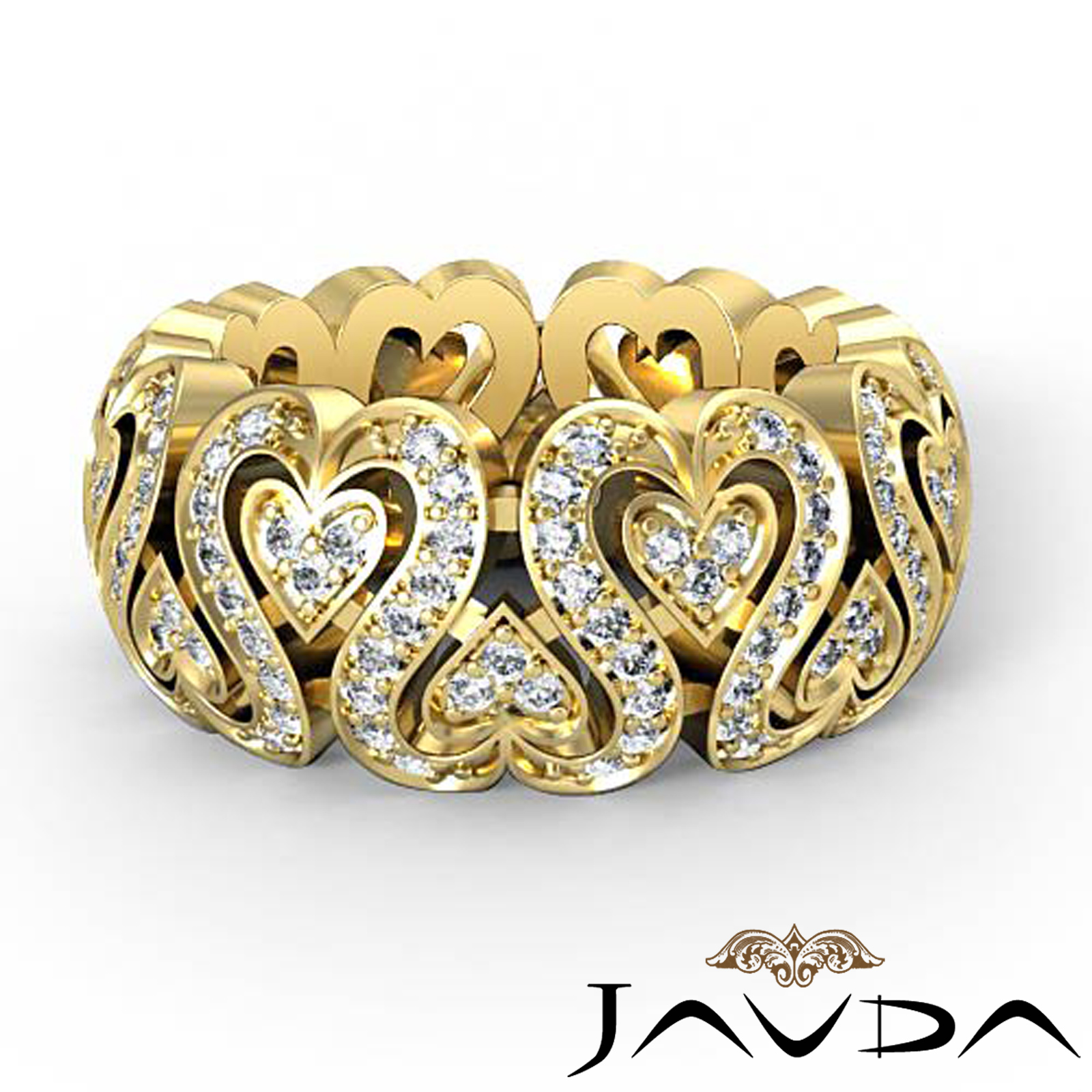 Round Diamond Eternity Wedding Ring Women Anniversary Band with unique Heart Cutout made in 14k Gold Yellow. (2Ct. tw.)