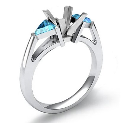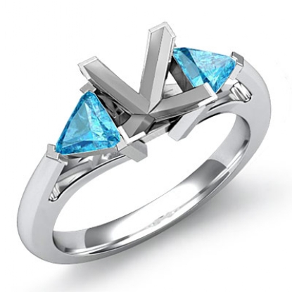 0.50 carat sky blue aquamarine 3 stone diamond Engagement ring princess cut semi mount setting made in 14k white gold.