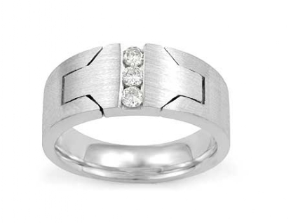 3 stone matte finish Men's Diamond Half Wedding Band in 14k White Gold 0.25 Ct