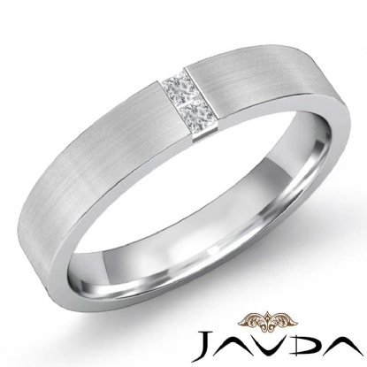 Matte finish diamond men's half wedding band is crafted in 14k white gold. This wedding ring features matte finished with 0.25 carat princess cut diamonds set in a channel setting.