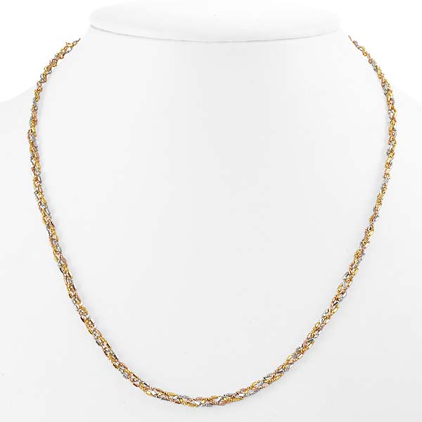 This 14k 2Tone Gold Braided Bead Chain weight is 5.2gram. Length of Chain is 16" and width is 2.50mm [milimeter].