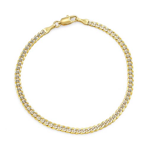 14k 2Tone Gold Men Solid Cuban Bracelet (3.10mm,7",2.6g)