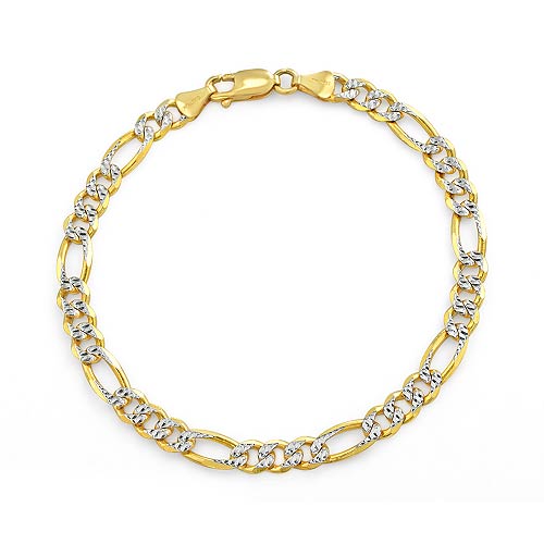 This 14k 2Tone Gold Men Solid Figaro Bracelet weight is 10.6gram. Length of Chain is 8" and width is 5.80MM [milimeter].