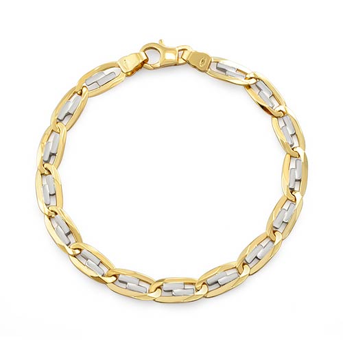 This 14 karat Two Tone Gold Men's Fancy Link Bracelet weight is 15.50 gram. Length of Chain is 8.25" and width is 6.50mm.