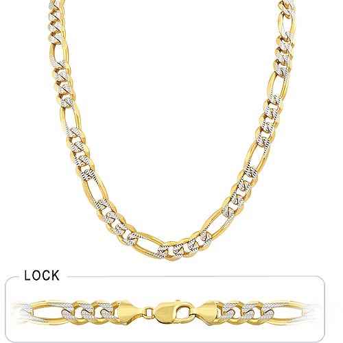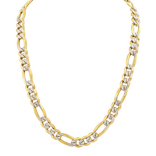 14k 2Tone Gold Men's Solid Figaro Chain (10.80mm,26",107.50g)