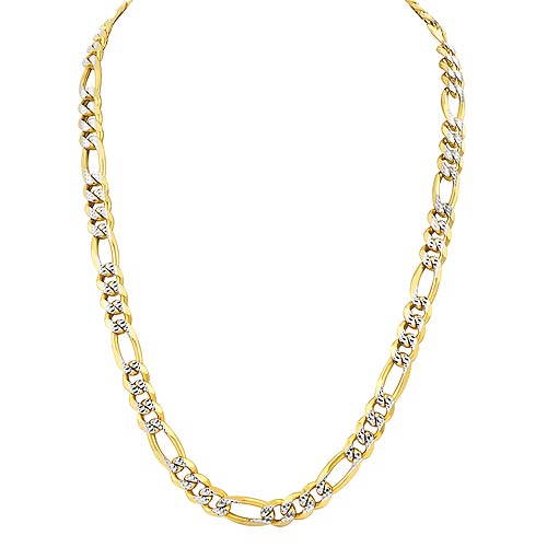 14k 2Tone Gold Men's Solid Figaro Chain (8.00mm,26",68g)