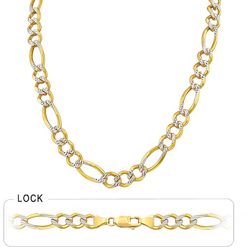 14k 2Tone Gold Men's Solid Figaro Chain (9.50mm,26",62.30g)