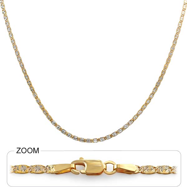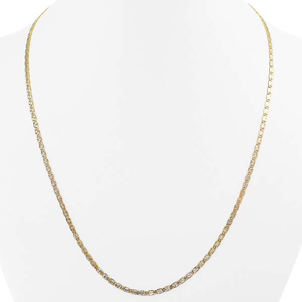 This 14k 2Tone Gold Snail Chain weight is 4.1gram. Length of Chain is 18" and width is 2.00mm [milimeter].
