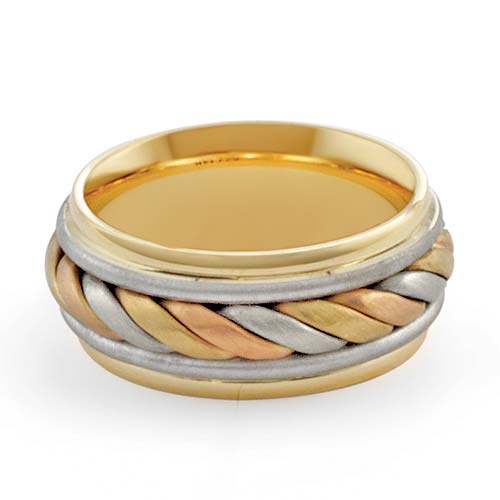 14k Tri Color Gold Wedding Band Ring Rope Design 9mm