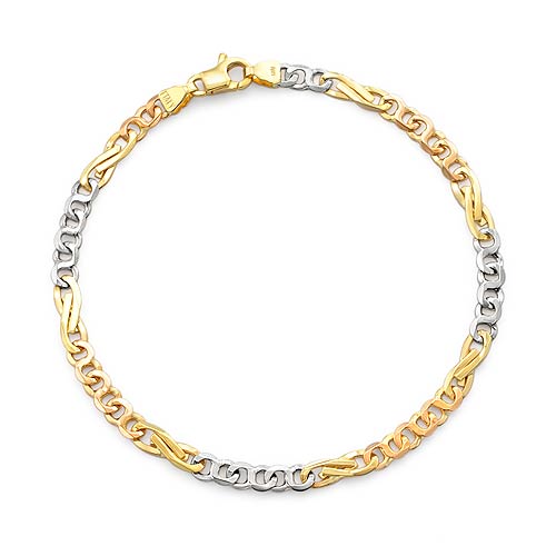 14k Tri Color Gold Men's Handmade Link Bracelet (4.5mm,8.25",8.6g)