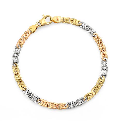 14k Tri Color Gold Men's Handmade Link Bracelet (4.5mm,8.25",8.9g)