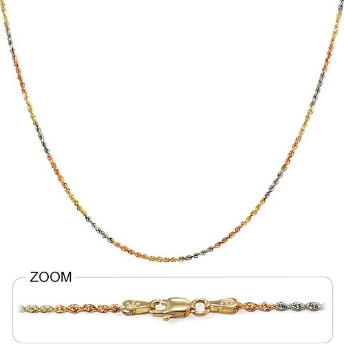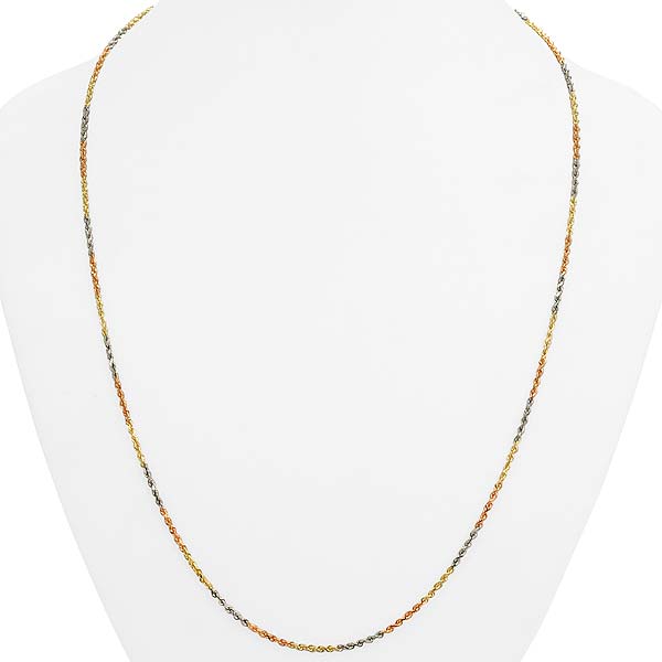 14k Tri Gold Diamond Cut Rope Hip Hop Chain Mens Necklace (1.5mm,20",4g)