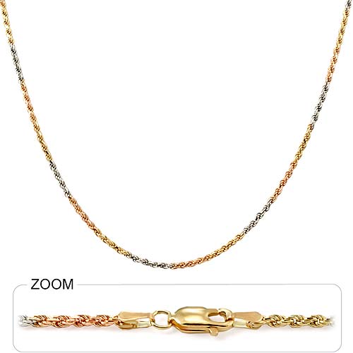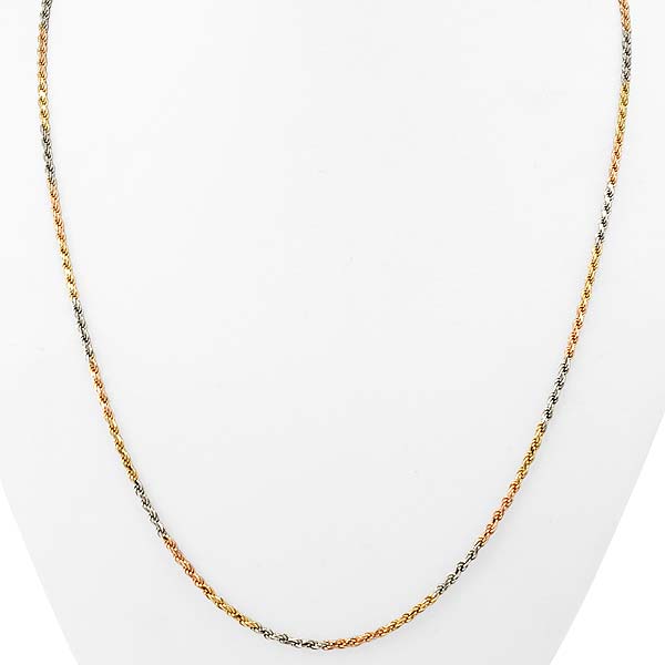 14k Tri Gold Diamond Cut Rope Hip Hop Chain Mens Necklace (2mm,20",7.72g)