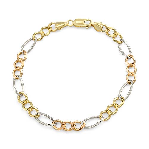 14k Tri Gold Men Solid Cuban Bracelet (6.40mm,8.50",9.9g)