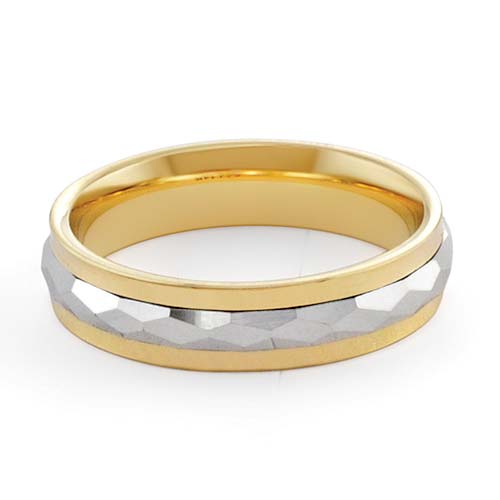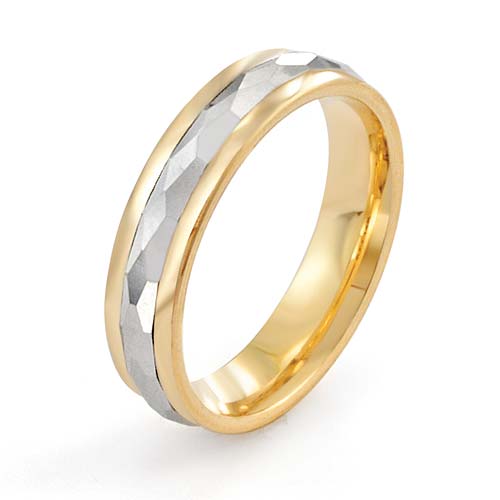 14 karat yellow and white GOLD 5mm wedding band with carved center design.