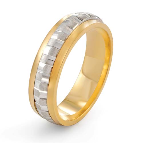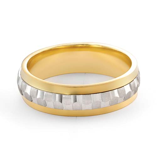 14k Two Tone Gold Wedding Band Ring Center Pattern 5.3mm