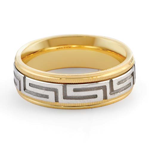 14k Two Tone Gold Wedding Band Ring Maze Design 6.35mm