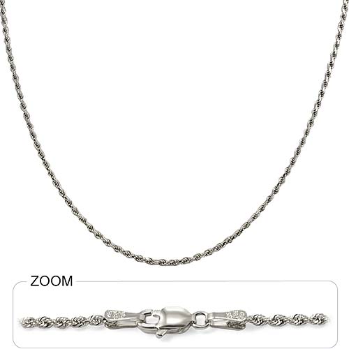 14k White Gold Diamond Cut Rope Hip Hop Chain Mens Necklace (2mm,18",6.6g)