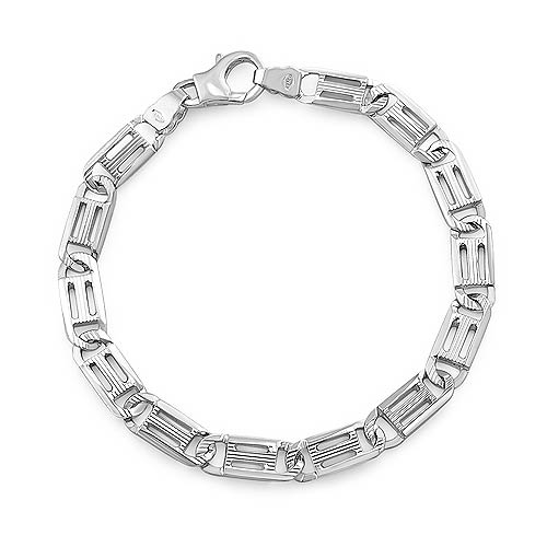 14k White Gold Men Fancy Link Bracelet (6mm,8.25",19.4g)