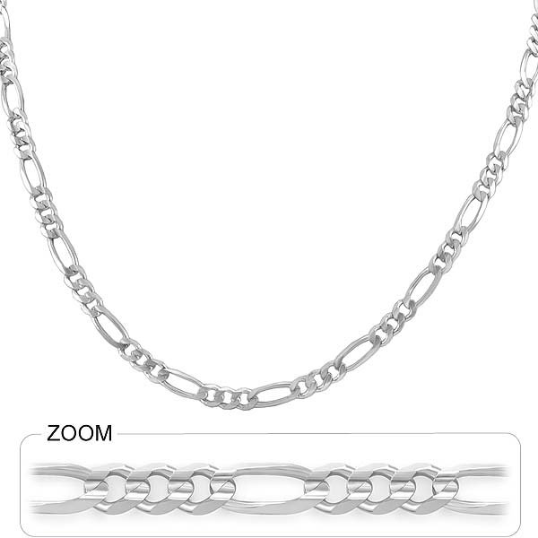 This 14k White Gold Men's Solid Figaro Link Chain weight is 19.30gram. Length of Chain is 24" and width is 5.0mm[milimeter].