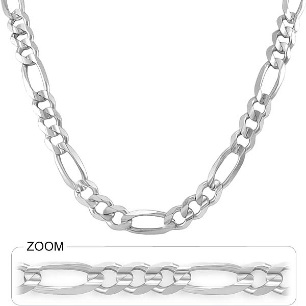 This 14k White Gold Men's Solid Figaro Link Chain weight is 82.20gram. Length of Chain is 24" and width is 5.50mm [milimeter].