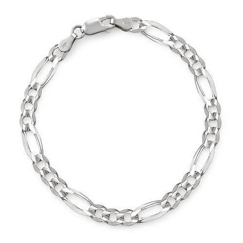 14k White Gold Solid Men Figaro Bracelet (5.0mm,7",6g)