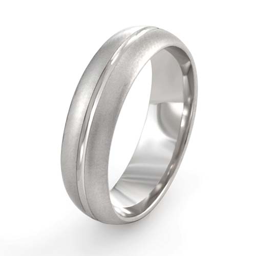 14 karat white GOLD 5.6mm wedding band with middle cut design and comfort fit.