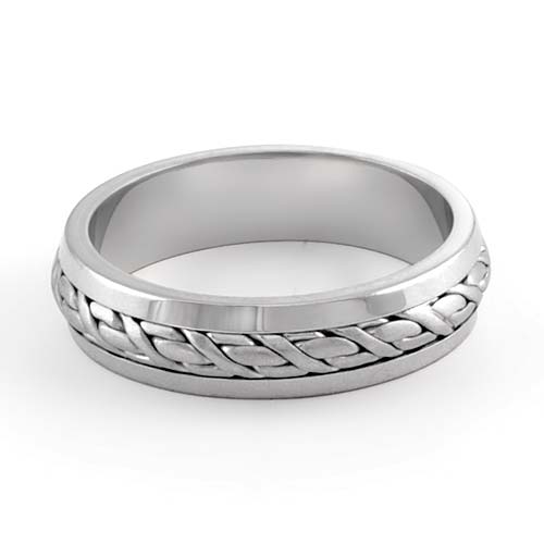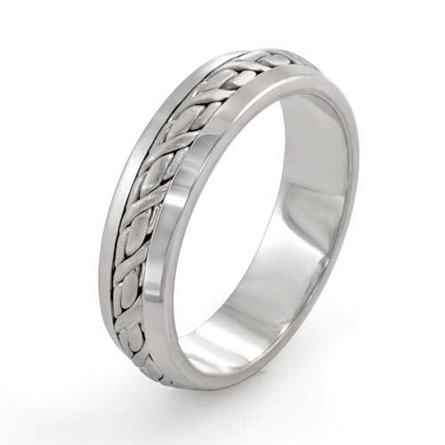 14 karat white GOLD 5.5mm wedding band with braided design and comfort fit.