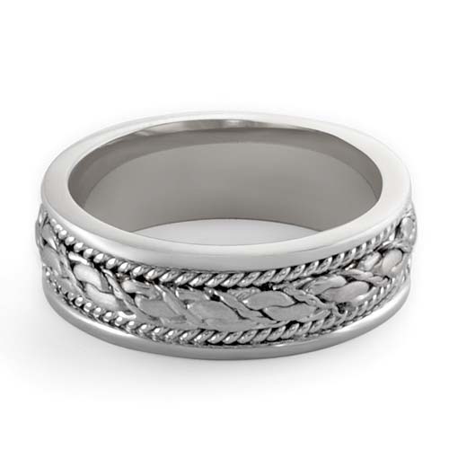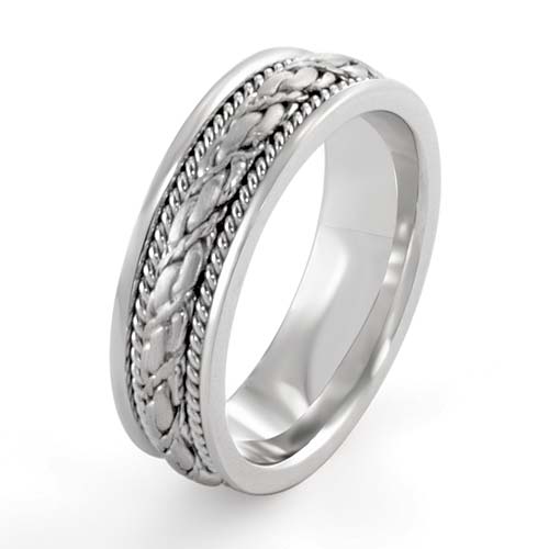 14 karat white GOLD 6.6mm wedding band with rope design and comfort fit.