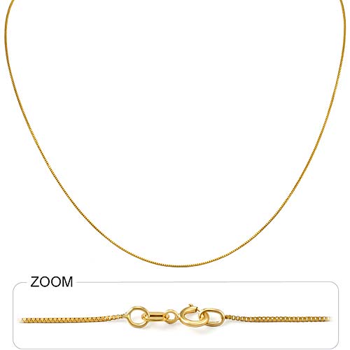 This 14k Yellow Gold Box Chain weight is 1.10gram. Length of Chain is 16" and width is 0.6mm [milimeter].